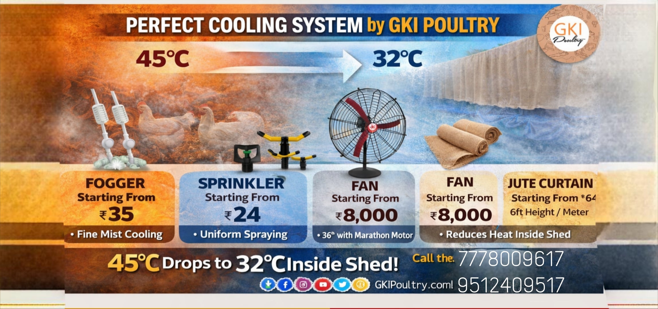 Complete Poultry Farm Solution for Cooling Fan | Foggers | Sprinklers | Jut Curtains